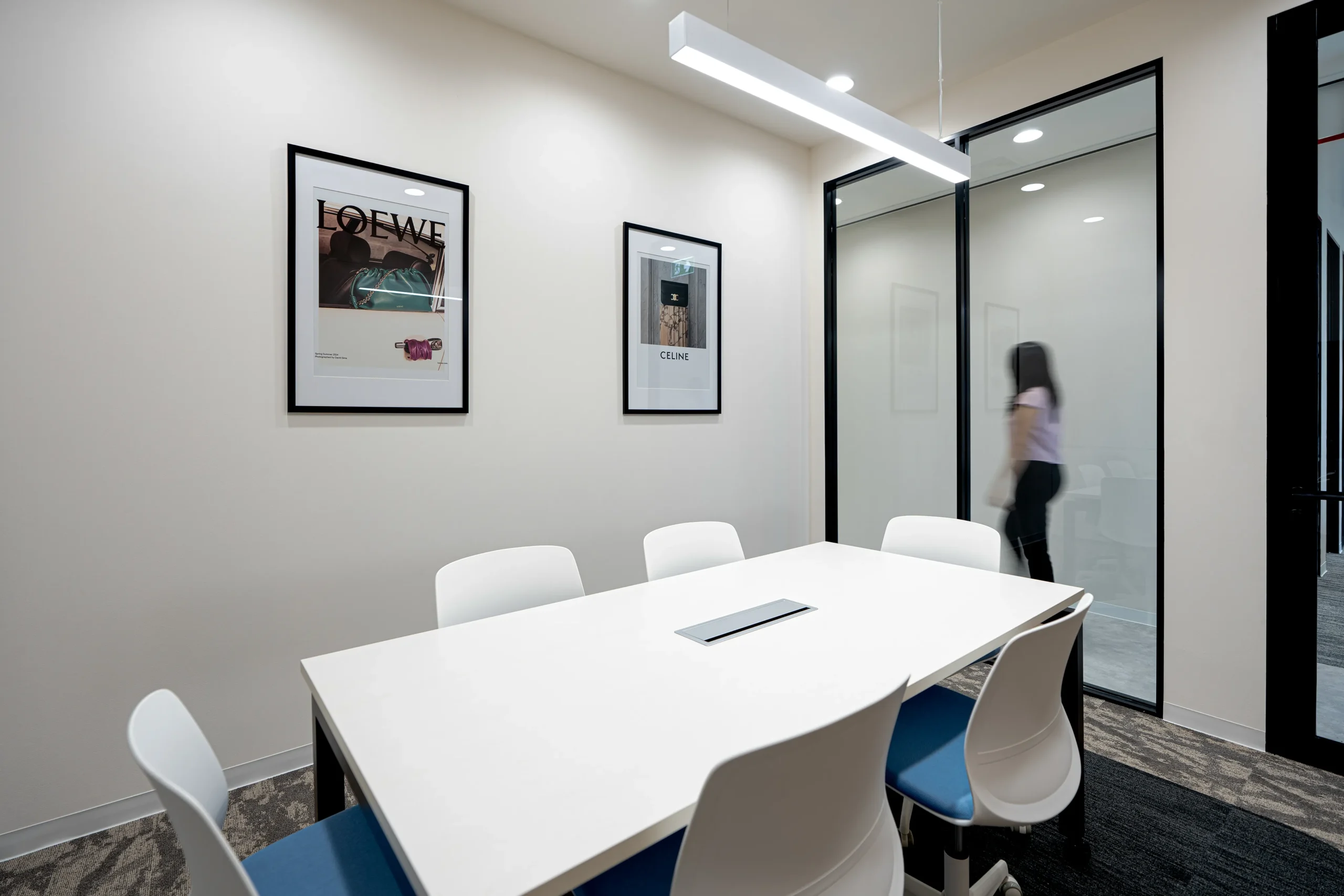 Built with an unwavering attention to detail, the office reflects a seamless fusion of form and function. A consistent palette of light wood flooring and neutral tones creates a unified aesthetic, while minimalist lines and refined finishes offer each brand room for identity expression. Every junction, edge, and surface was crafted to embody the quiet confidence associated with luxury design.