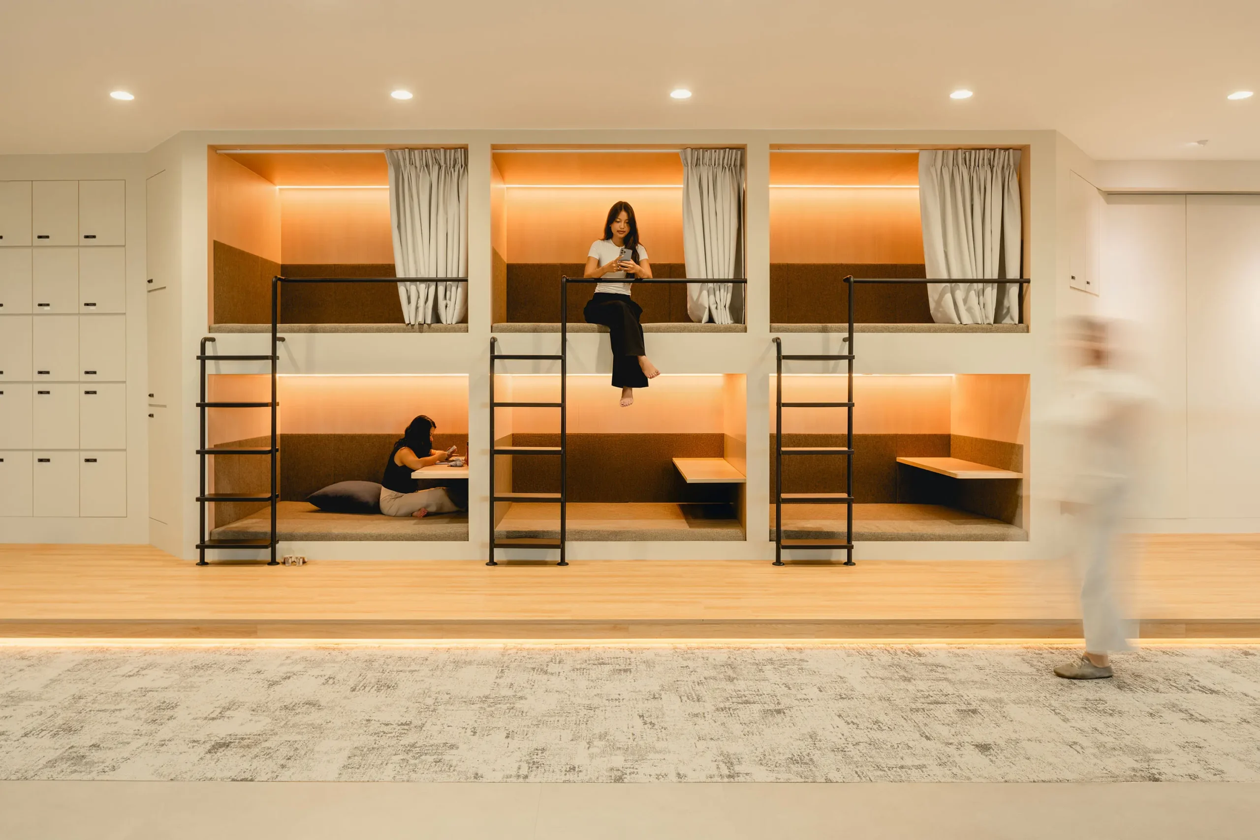 Complementing these are focus pods and nap pods for quiet rejuvenation, along with a pantry and Producer’s Lounge that foster informal collaboration and mentorship.