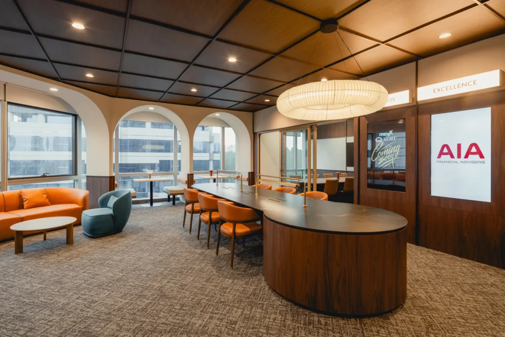 For the new Rev X Group workplace in Singapore, Ngee Koon collaborated with LFA Studio to bring to life a vibrant, future-ready environment for a new generation of financial professionals representing AIA Financial Advisers Private Limited. The project reflects Rev X Group’s forward-thinking culture and focus on collaboration, flexibility, and wellbeing.